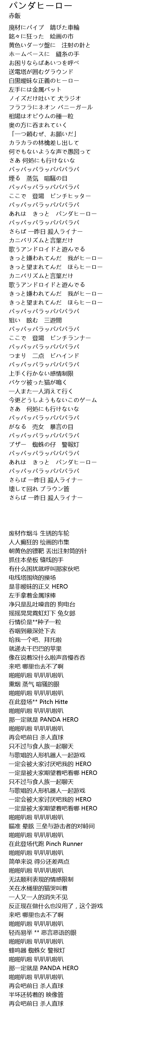 | [03:02.98] | あれは きっと パンダヒーロー |
