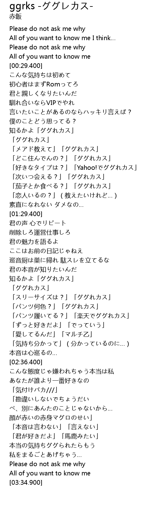 | [02:20.200] | 「パンツ何色?」「ググれカス」 |