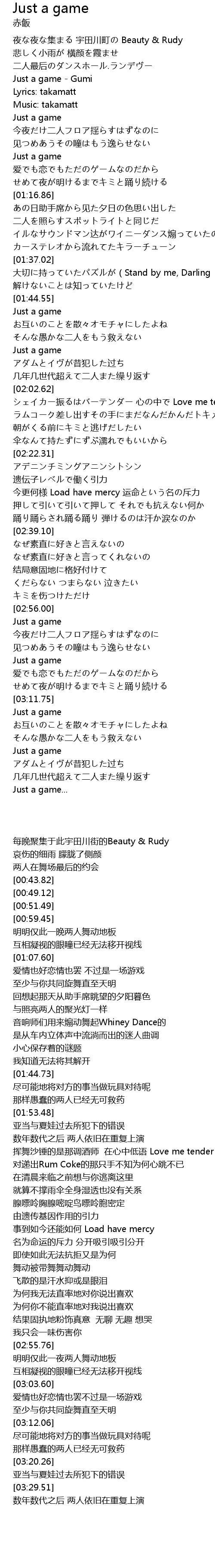 | [00:43.82] | Just a game Gumi |