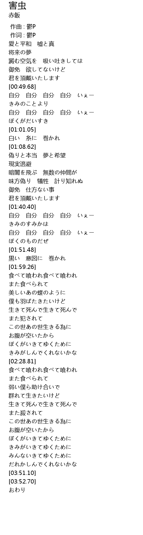 | [02:00.57] | 食べて喰われ食べて喰われ |
