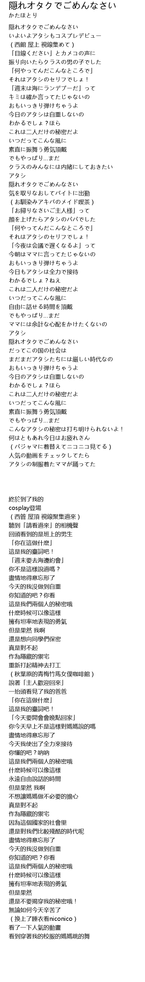 | [01:21.32] | 隠れオタクでごめんなさい |