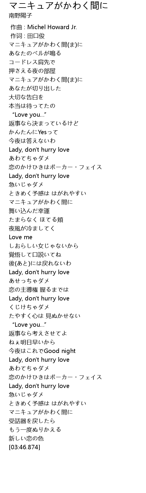 | [00:38.671] | マニキュアがかわく間(ま)に |