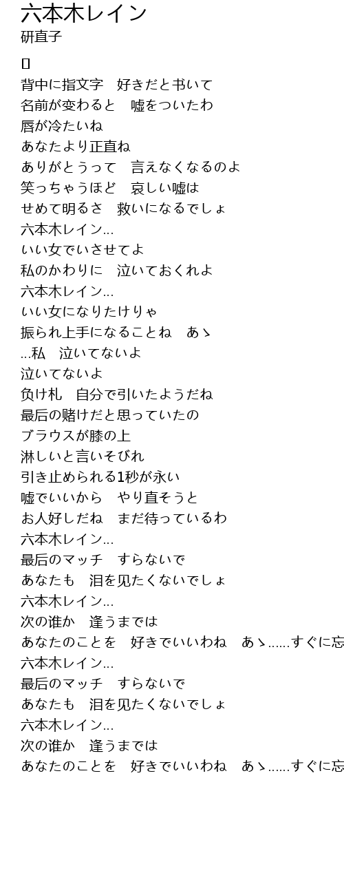 | あなたのことを 好きでいいわね あゝ……すぐに忘れるけど忘れるけど |