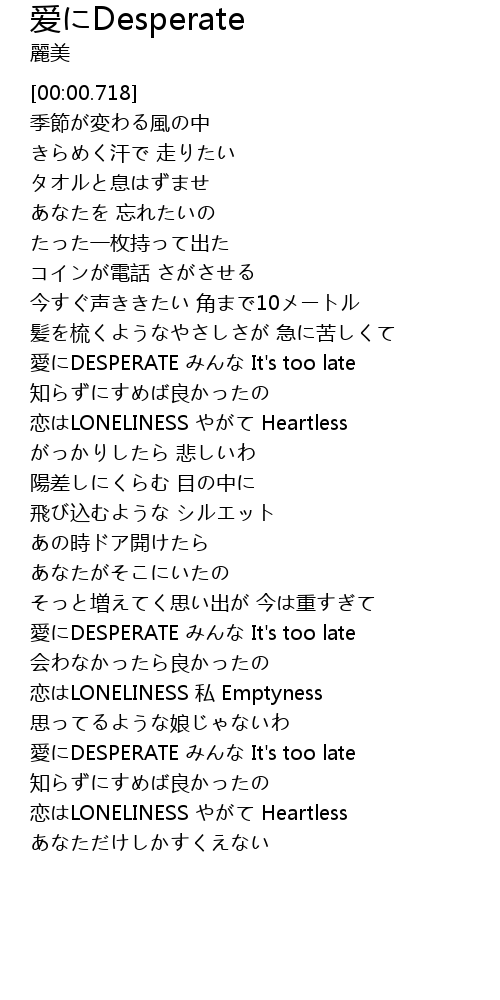| [03:25.753] | 愛にDESPERATE みんな It's too late |