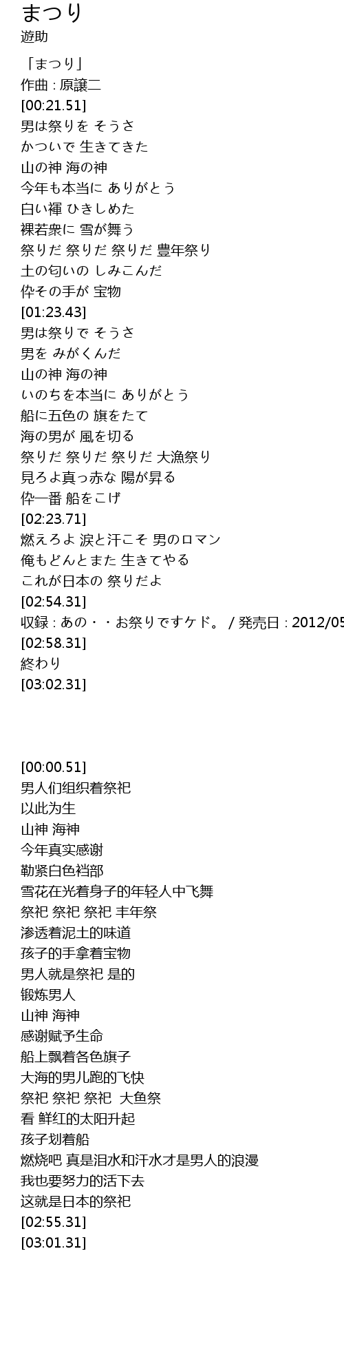 | [02:04.90] | 祭りだ 祭りだ 祭りだ 大漁祭り |