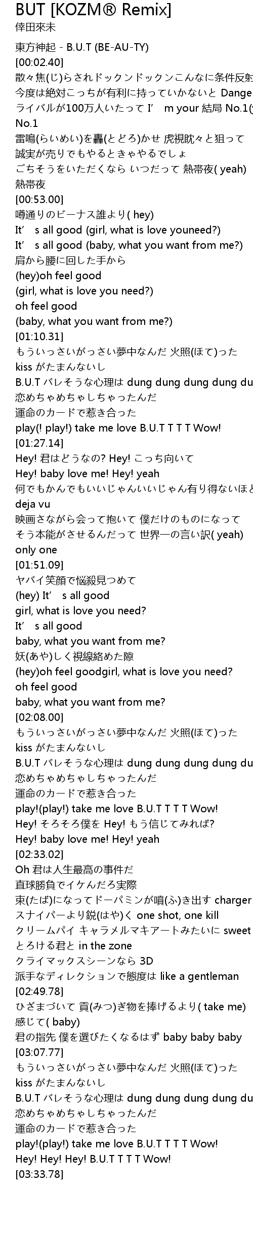| [01:14.99] | B.U.T バレそうな心理は dung dung dung dung dung dung dung |
