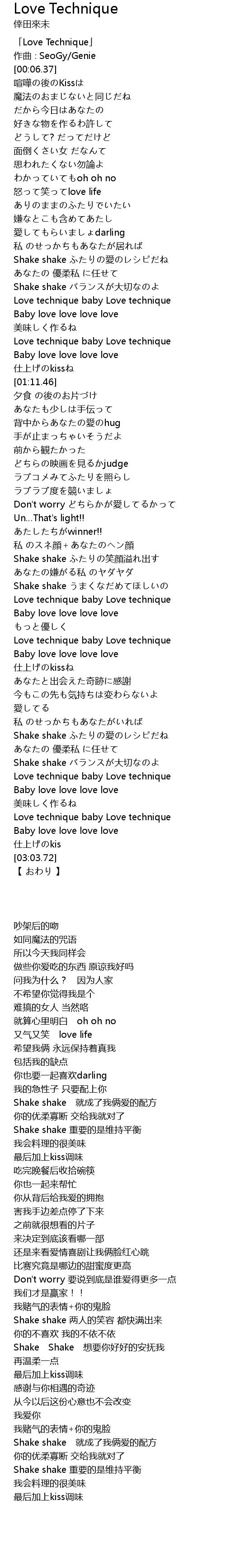 | [00:01.37] | 「Love Technique」 |