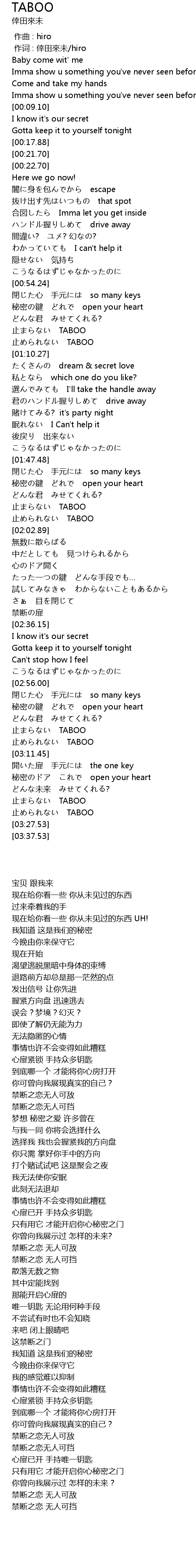 | [03:09.74] | zhǐ TABOO |