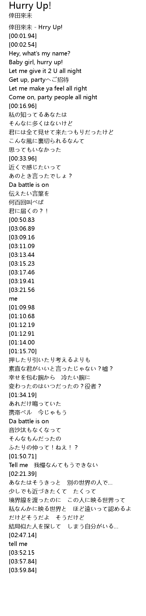 | [00:00.14] | 倖田來未 - Hrry Up! |