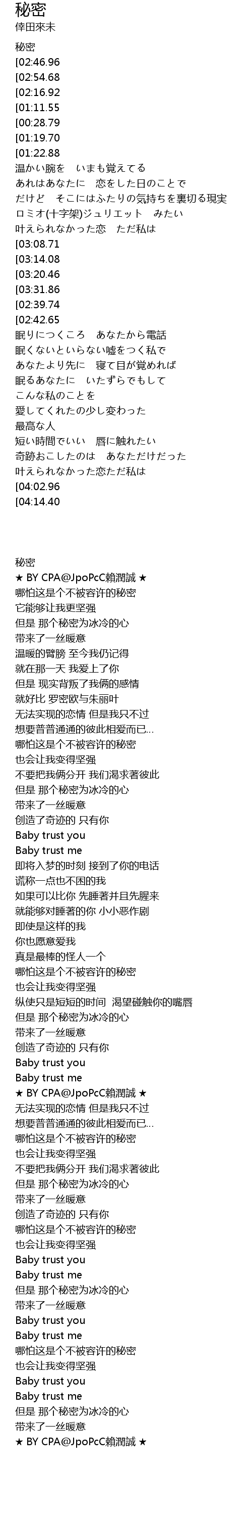 | [01:31.23][02:39.74][03:42.55][03:54.08][04:05.42] | Baby trust you |