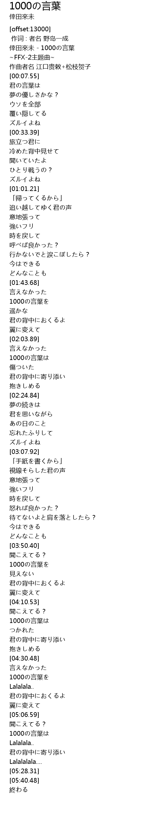 | [00:00.00] | 倖田來未 - 1000の言葉 |