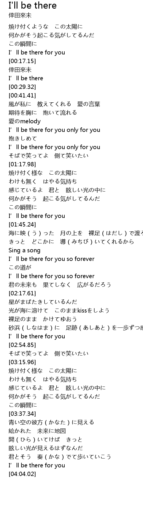 | [01:13.34] | そばで笑ってよ 側て笑いたい |
