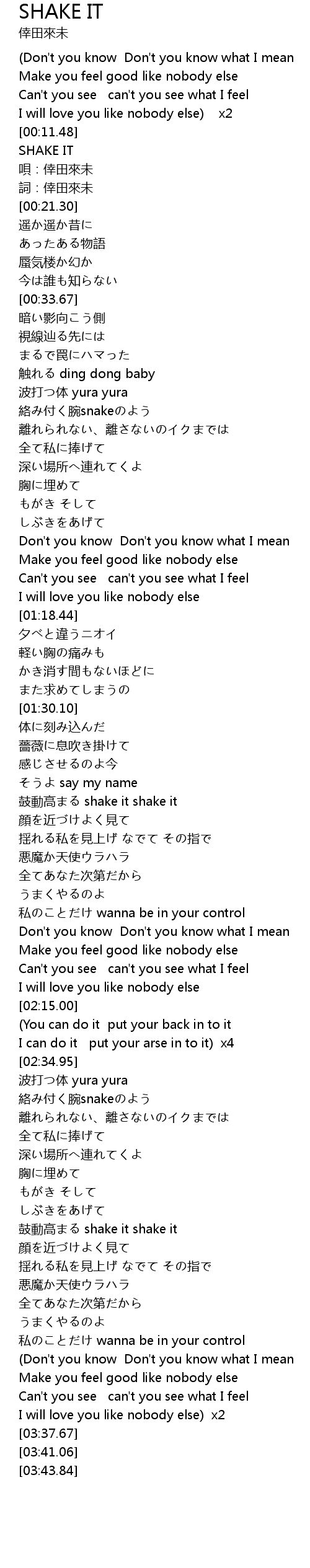 | [00:13.50] | SHAKE IT |