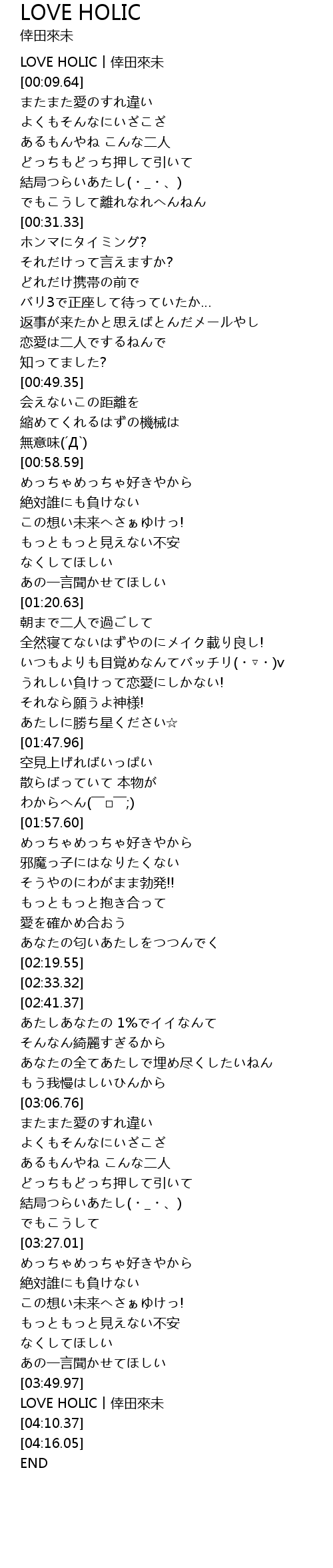 | [03:59.88] | LOVE HOLIC丨倖田來未 |