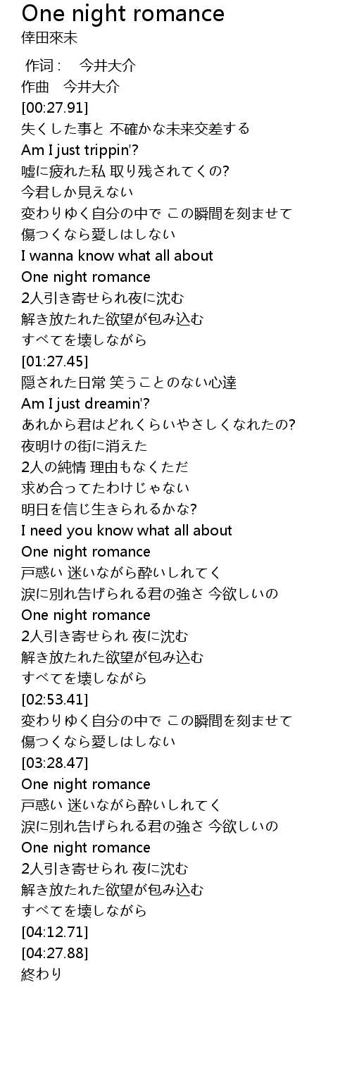 | [03:33.38] | One night romance |