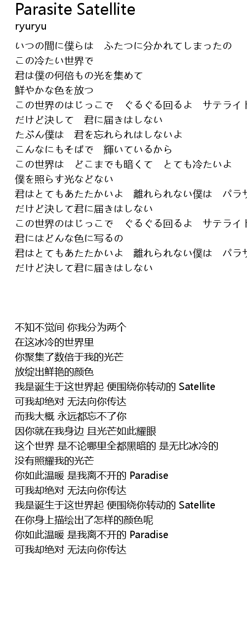 | [02:26.579] | この世界のはじっこで ぐるぐる回るよ サテライト |