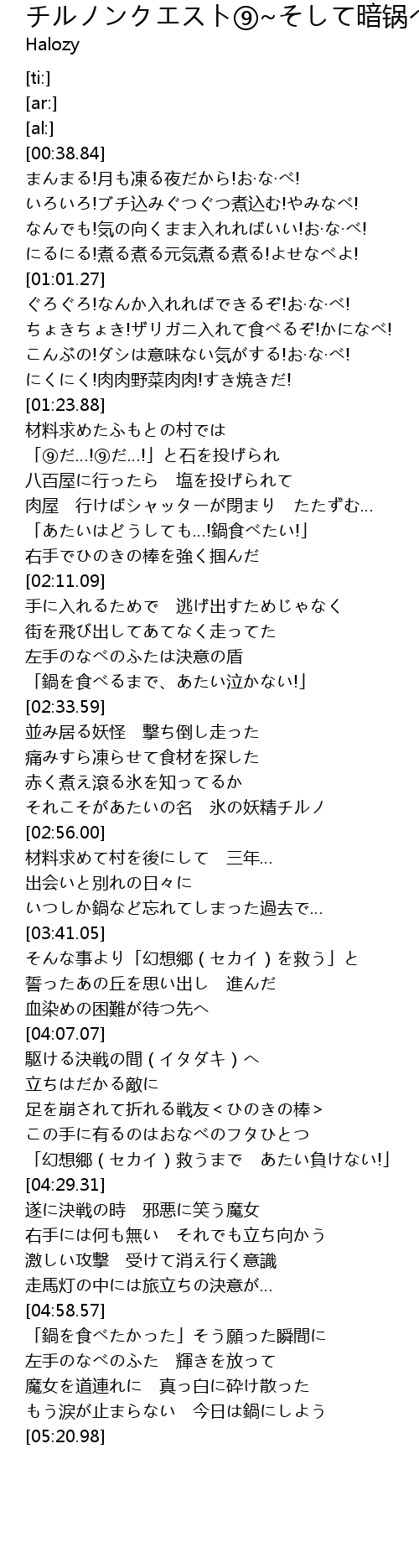| [04:23.75] | 「幻想郷(セカイ)救うまで あたい負けない!」 |
