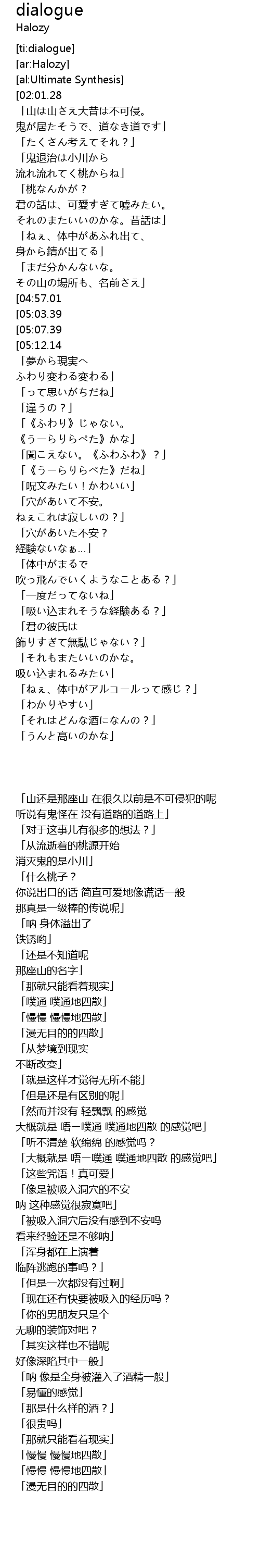 | [02:02.50][04:57.01] | 「うーらりららぺたりら」 |