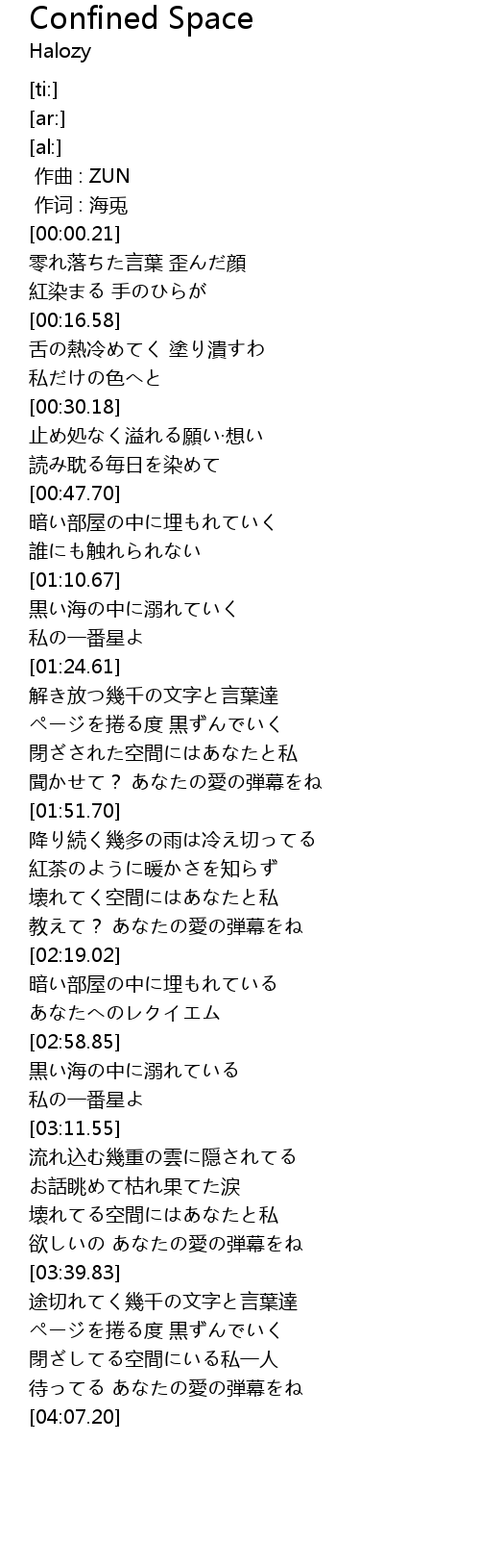 | [03:53.26] | 閉ざしてる空間にいる私一人 |