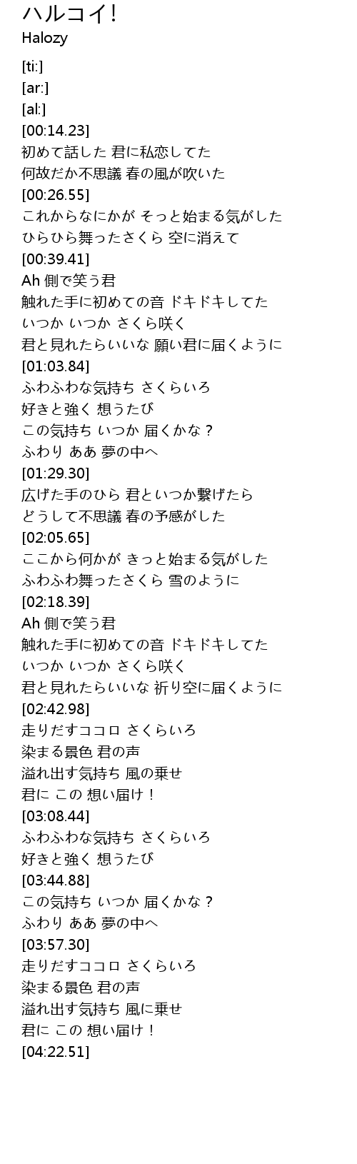| [03:32.55] | ふわふわな気持ち さくらいろ |