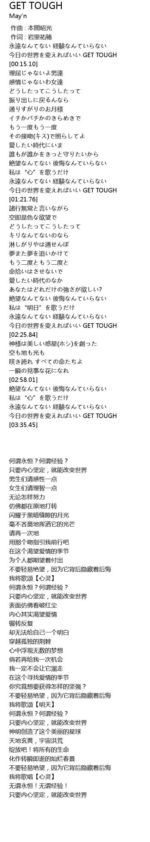 | [00:06.53] | jin ri shi jie bian GET TOUGH |