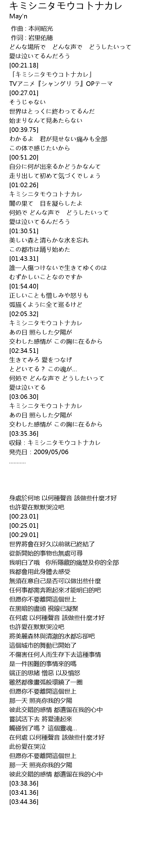 | [03:38.36] | 収録:キミシニタモウコトナカレ |