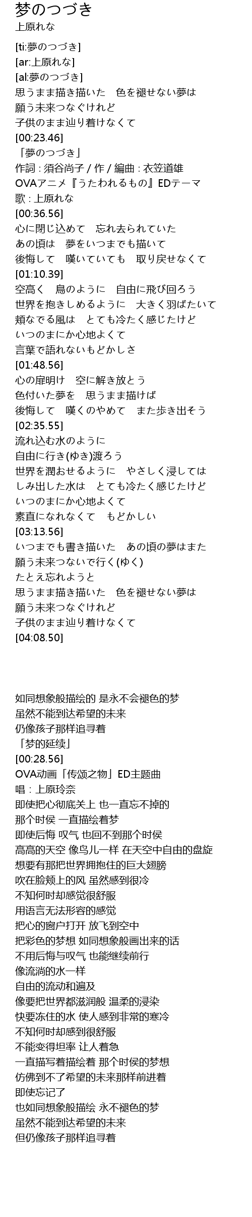 | [00:03.87] | 思うまま描き描いた 色を褪せない夢は |