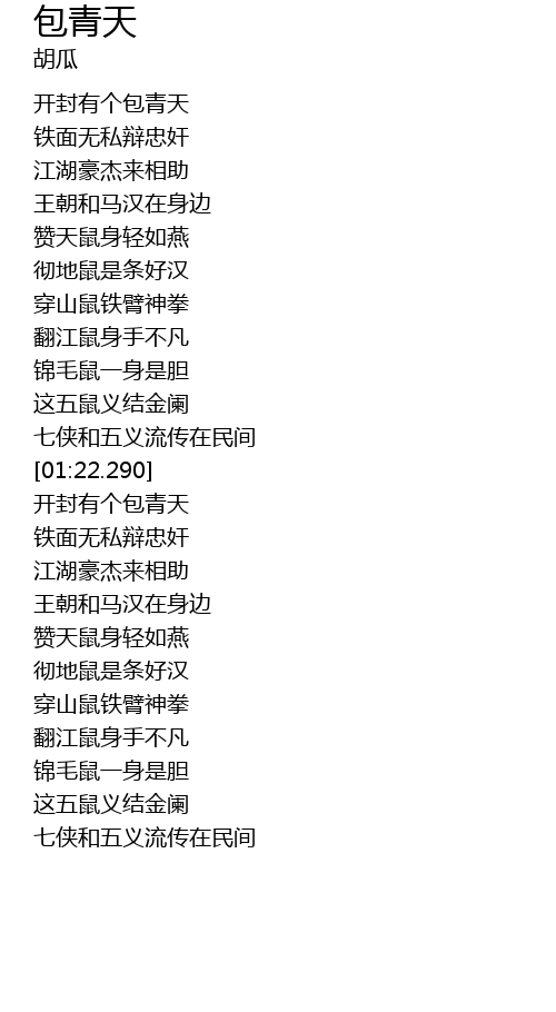 | [00:15.899] | 开封有个包青天 |