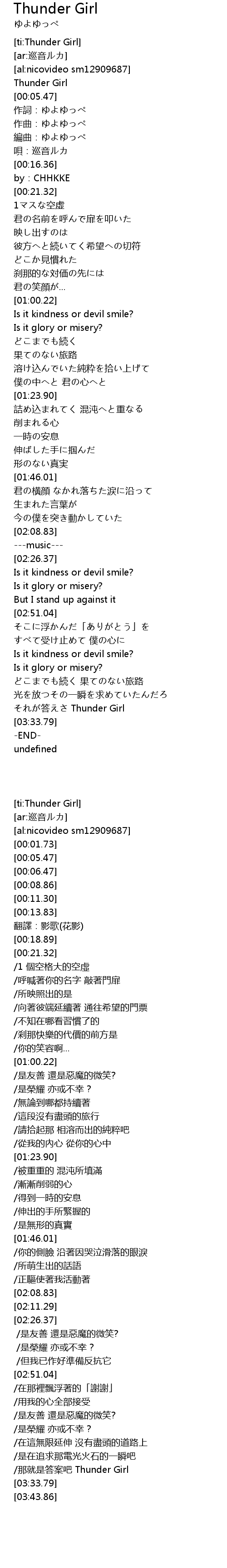| [00:06.47] | 作詞:ゆよゆっぺ |