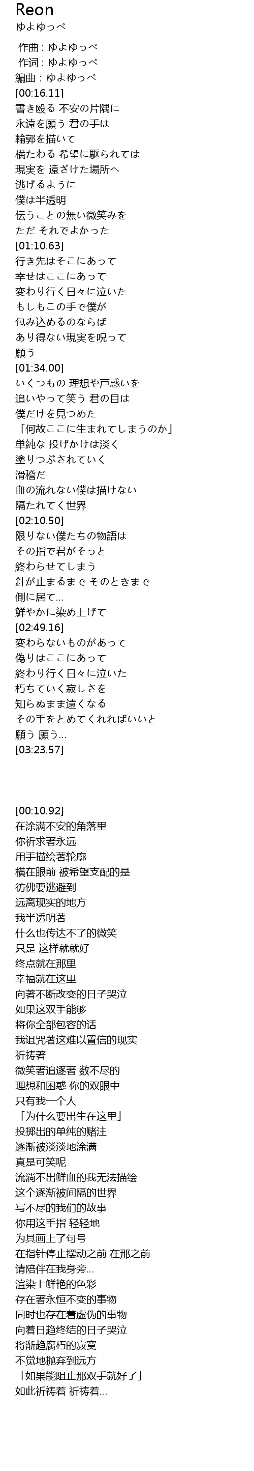 作词 : ゆよゆっぺ |
