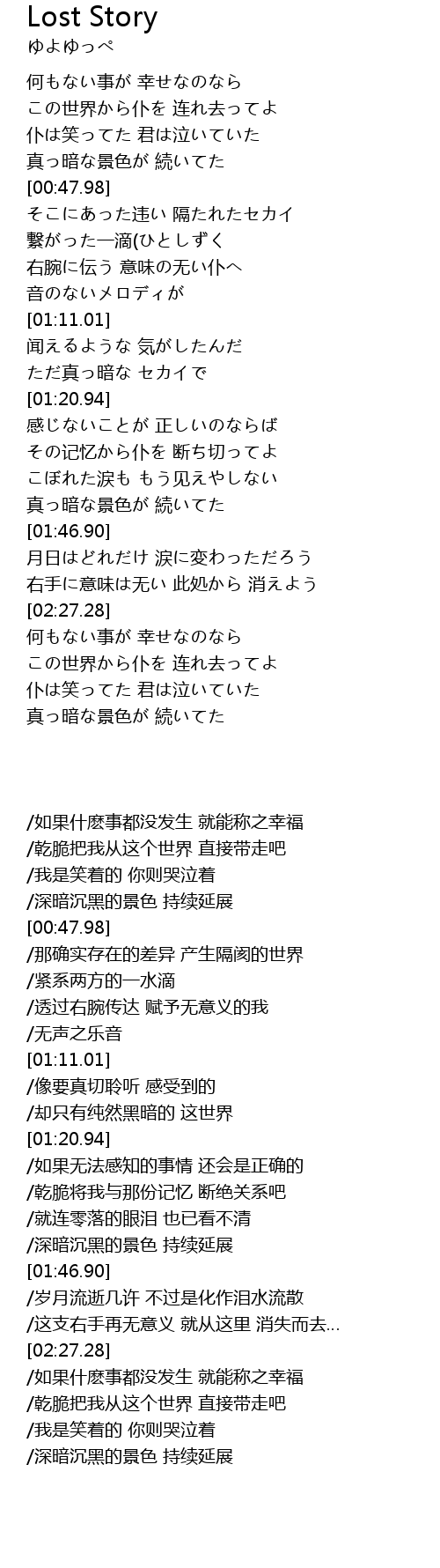 | [00:31.00] | 仆は笑ってた 君は泣いていた |