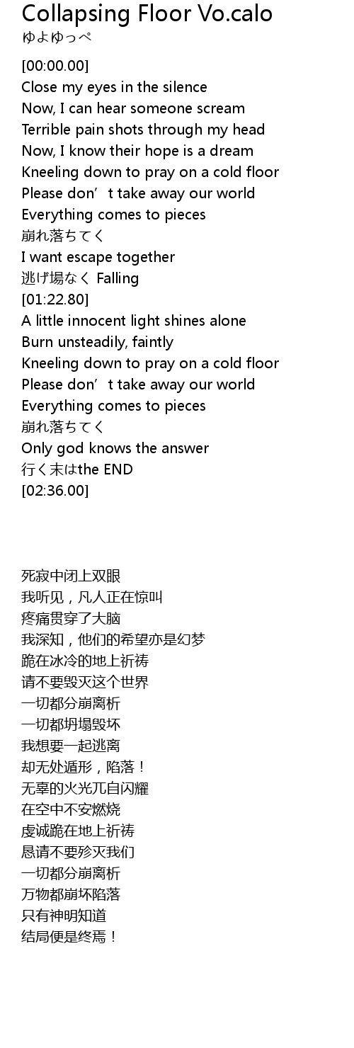 | [00:36.80] | Kneeling down to pray on a cold floor |