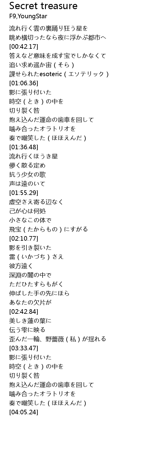 | [02:04.95] | 飛宝(たからもの)にすがる |