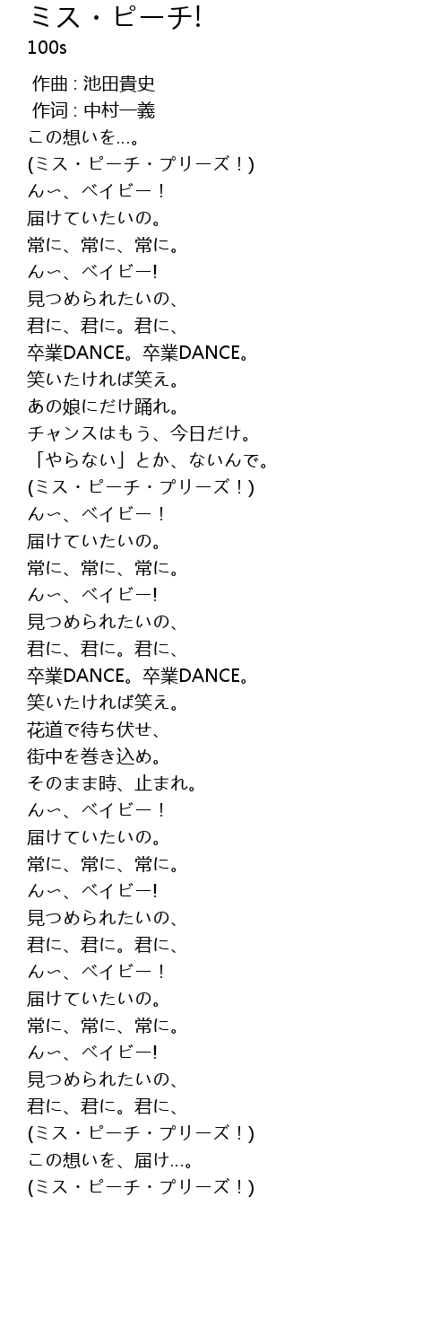 | [03:52.33] | (ミス・ピーチ・プリーズ!) |