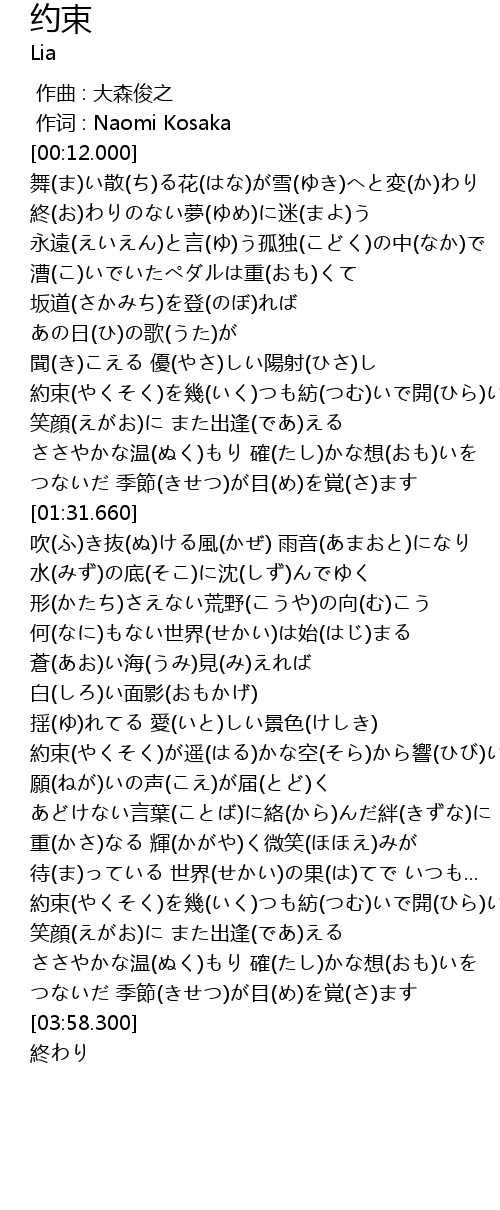 | [00:01.00] | 作词 : Naomi Kosaka |