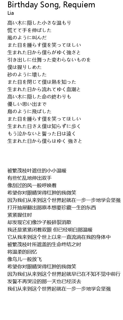| Song | Birthday Song, Requiem |