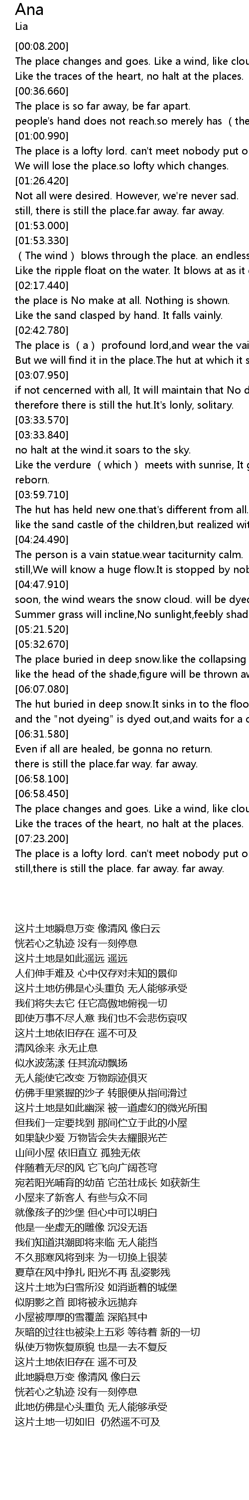 | [01:38.900] | still, there is still the place.far away. far away. |