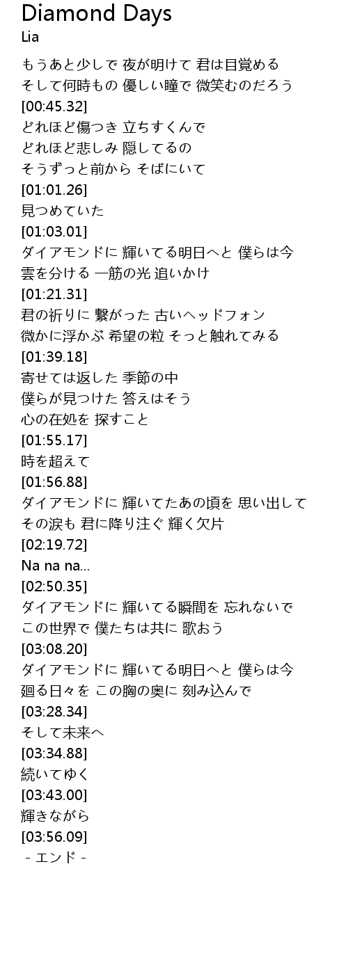 | [01:57.07] | ダイアモンドに 輝いてたあの頃を 思い出して |