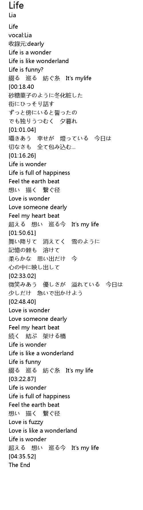 | [04:02.92] | Life is wonder |