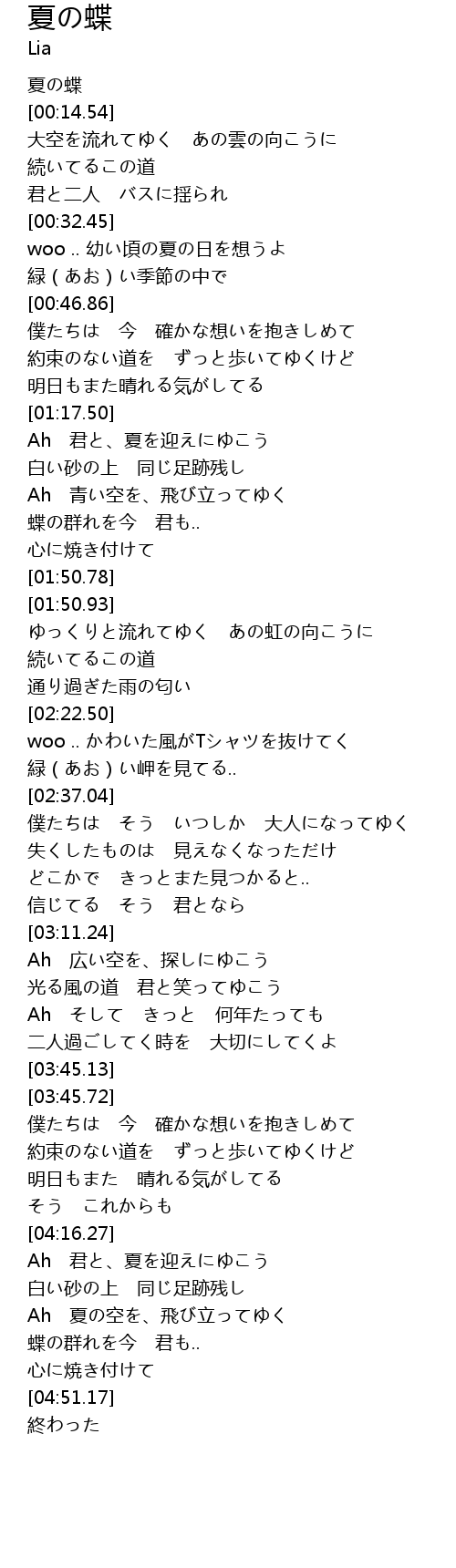 | [00:32.70] | woo ‥ 幼い頃の夏の日を想うよ |