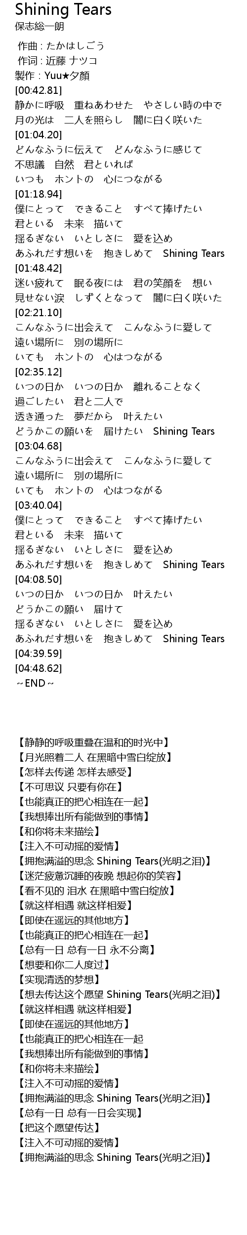 | [03:58.54] | xiang bao Shining Tears |