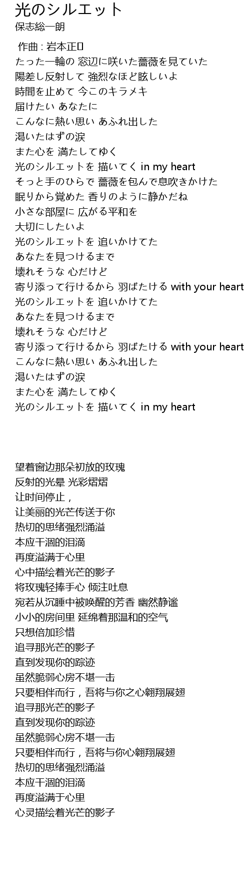 | [03:40.180] | 光のシルエットを 描いてく in my heart |