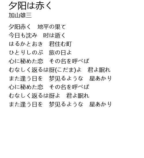 | Song | 夕阳は赤く |
