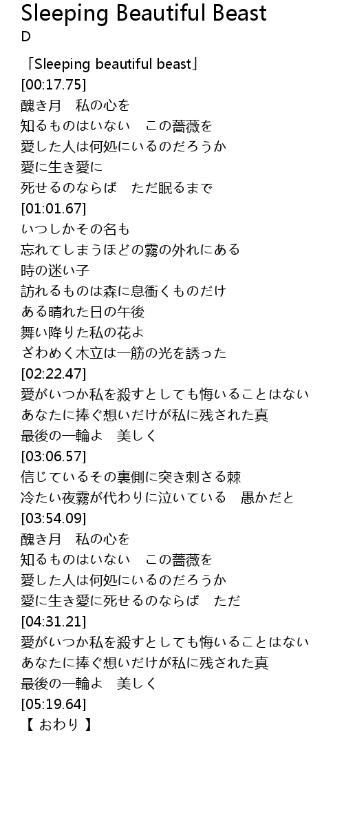 | [00:01.75] | 「Sleeping beautiful beast」 |