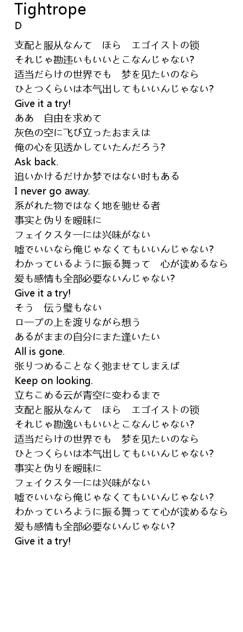 Tightrope Lyrics