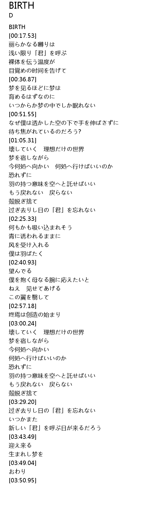| [03:16.19] | 羽の持つ意味を空へと託せばいい |