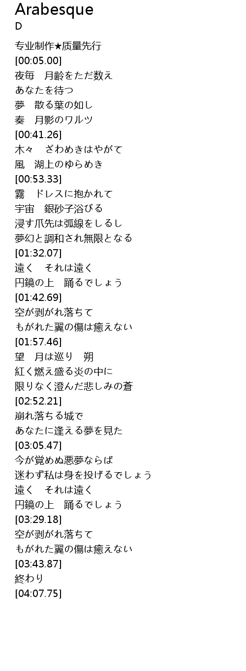 | [01:17.03] | 浸す爪先は弧線をしるし |
