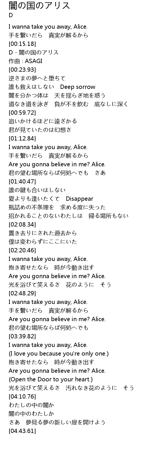 | [00:17.93] | D - 闇の国のアリス |