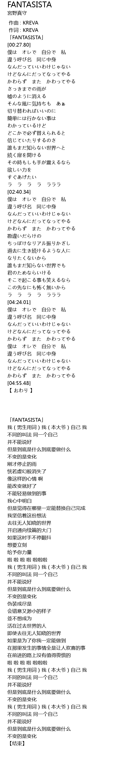 | [04:26.38] | 僕は オレで 自分で 私 |