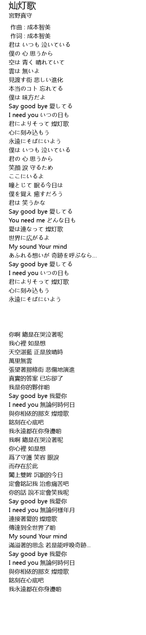 | [03:56.490] | Say good bye 愛してる |